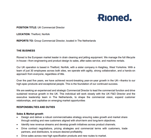 They are now seeking an experienced and strategic Commercial Director to lead the commercial function and drive sustained revenue growth in the UK. This individual will work closely with the UK F&O Director and the executive leadership team in The Netherlands, to shape the commercial vision, expand customer relationships, and capitalise on emerging market opportunities